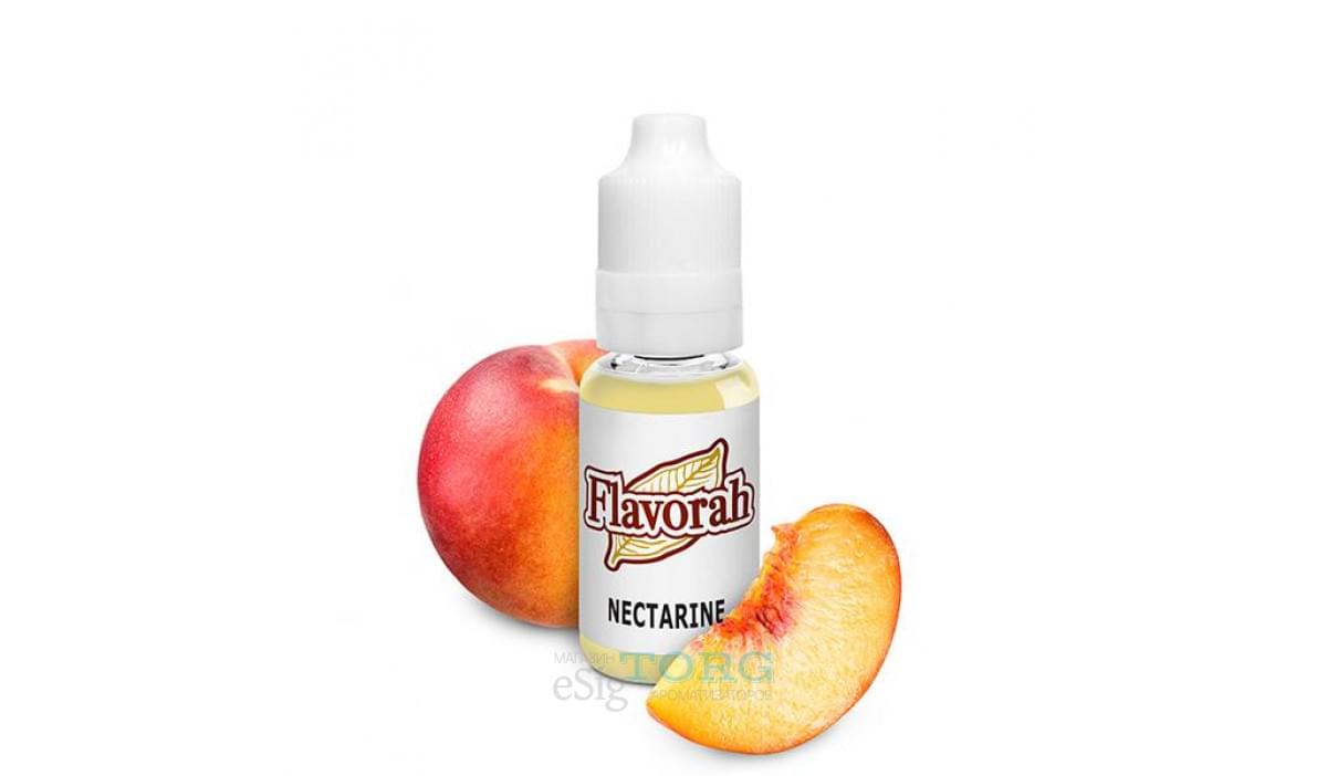 Арома Nectarine Flavorah — Довольно аутентичный вкус нектарина, только , немного густой ( сиропный ) и перезрелый . Похож на FA White Peach , но немного грубее . Throat hit менее заметен в миксе Эта разновидность персика отличается гладкой кожицей, а в его вкусе — больше сладости. Пробуйте нектарин, смешиваяая одноименную премиальную аромку сольно и в сочетании с другими фруктами. При употреблении Nectarine FLV соблюдайте рекомендованные пропорции: от 0,2 до 1% (для миксов) и 1,5 - 1,75% автономно (соло)