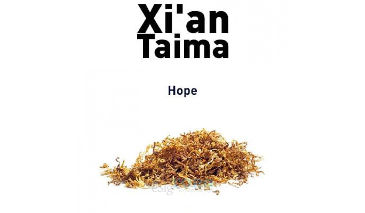 Ароматизатор для рецепта со вкусом сигарет марки Hope — еще один табачный концентрат от китайского производителя Xi'an Taima. Hope XT — высококачественная арома, которая поставляется в сильно концентрированном виде. При смешиваяании следует придерживаться дозировки не более 2-3%. Можно использовать арому в сольных рецептах и миксах.